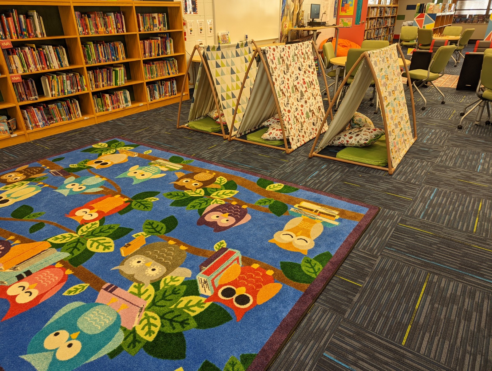 The read-aloud area from another angle. Our reading tents are featured here.